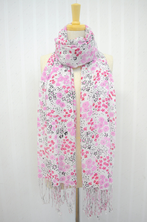 色 柄:大花柄 番:4144素 材:バンブー100%(指定外繊維)サイズ:60x180cmカラー:ベージュ/ピンク/パープル